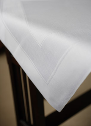 Diesen Klassiker der Tischkultur - edelster Leinendamast!- mit einem leicht silbrig wirkenden Band als Mittelmotiv und im Überhang, bieten wir Ihnen an.