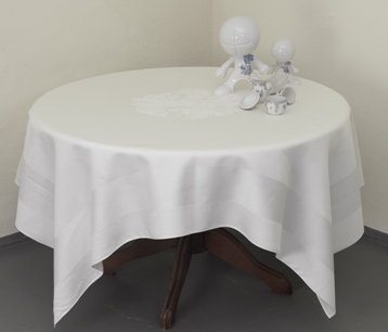 Sie können hier Tafeltücher im Dessin "Atlaskante" Qualität 90 (ohne Wappen), d.h. mit einem umlaufenden Satinband im Überhang und mit ovalem Mittelmotiv anstelle des Wappens, in den Warenkorb legen: